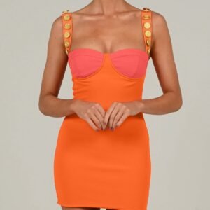 Vestido midi con abertura lateral junto con una flor bordada con perlas y una sola manga.